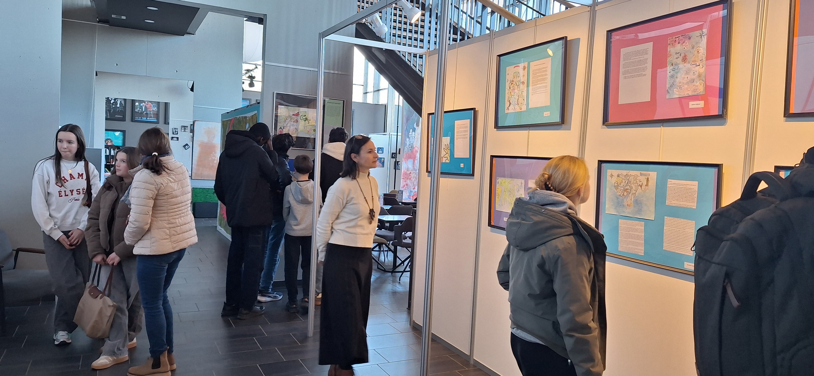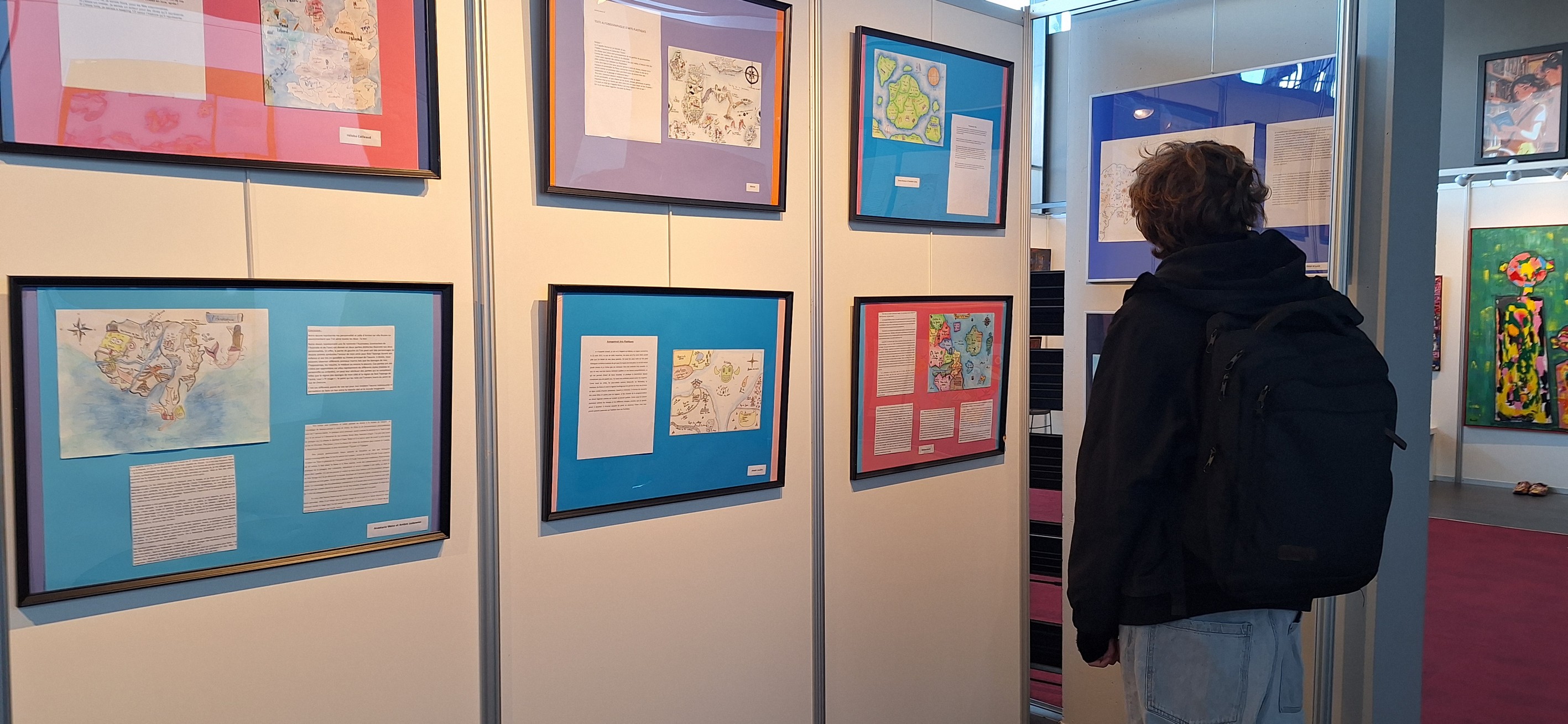 Ainsi, les élèves ont pu découvrir les œuvres des 30 artistes exposés et échanger quelques mots avec eux. Ils ont aussi pu voir leurs propres travaux précédemment réalisés en français et en arts plastiques sur le thème « cartographies intimes » spécialement exposés dans le cadre de cette Biennale.