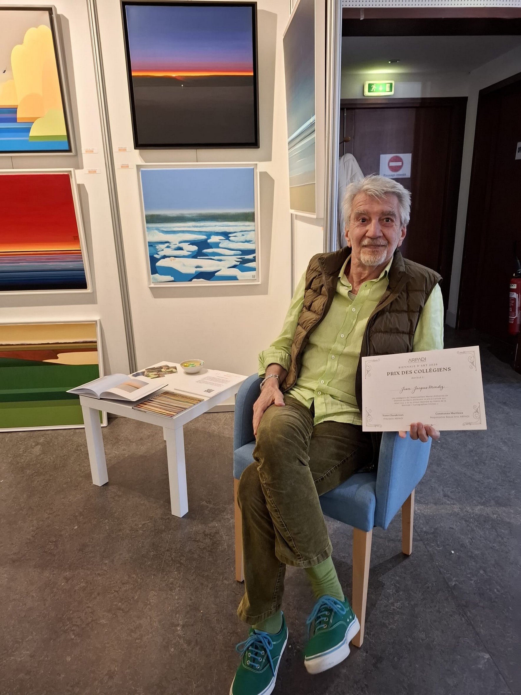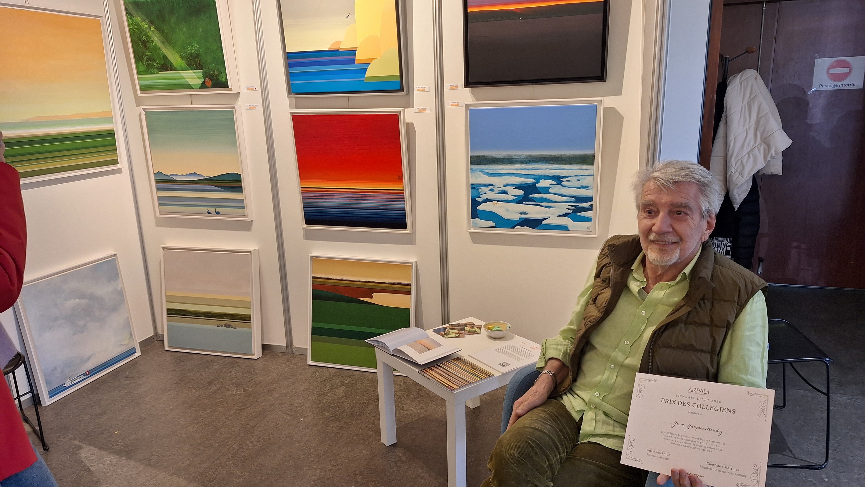 Après cette riche visite, les élèves ont voté pour choisir l’artiste exposé qui, selon eux, a le mieux répondu à la thématique « cartographies intimes ». Et à la suite de ce vote, c’est l’artiste Jean-Jacques Mendez qui a été désigné pour recevoir le prix des collégiens.